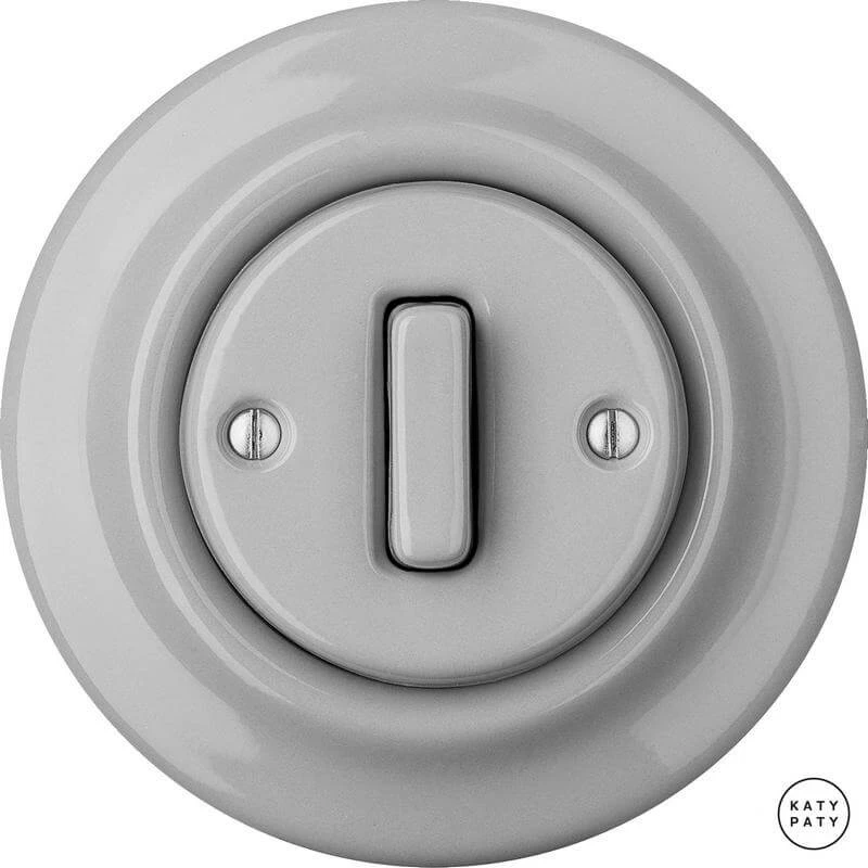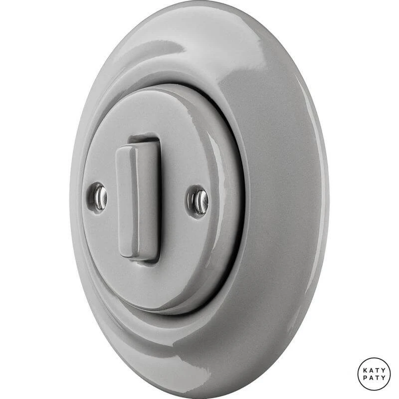 Ретро выключатель CAGSl1 цвет бетон глянцевый от чешского бренда Katy Paty изготовлен вручную из фарфора. Данная модель выглядит презентабельно и отлично дополнит интерьер как в современном, так и в ретро стиле. Дизайнерский выключатель Katy Paty отличается функциональностью и простотой в использовании. Данная модель разработана с учётом всех современных требований и соответствует европейским стандартам.Винтажный выключатель CAGSl1 цвет бетон глянцевый прекрасно сочетается в комплектации с электротоварами для скрытого монтажа. Модель идёт в комплекте с фарфоровой рамкой, шурупы представлены в четырёх цветах на выбор: нержавейка, черный, серебро, латунь.