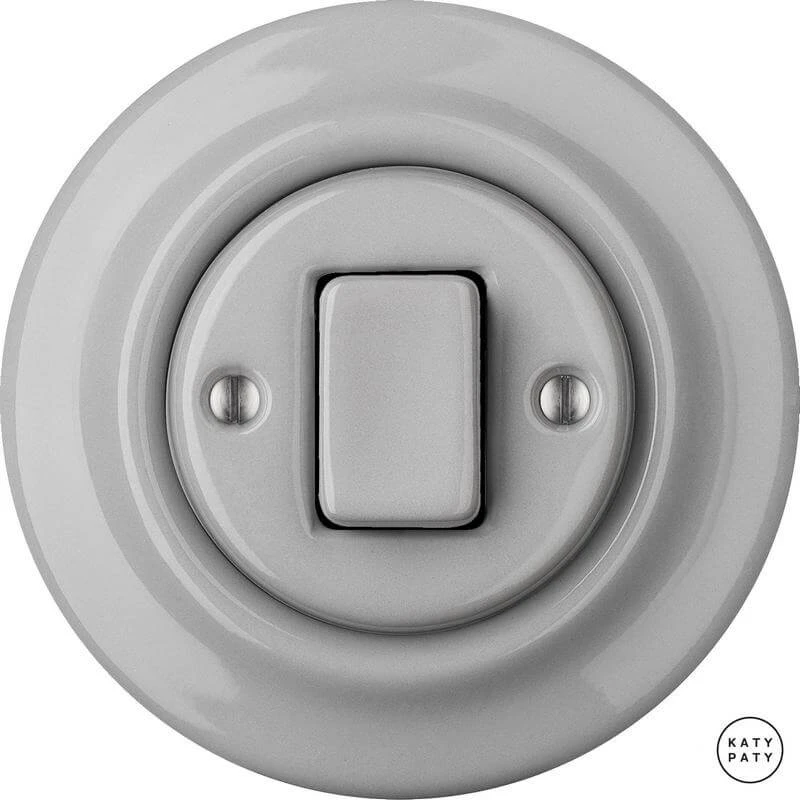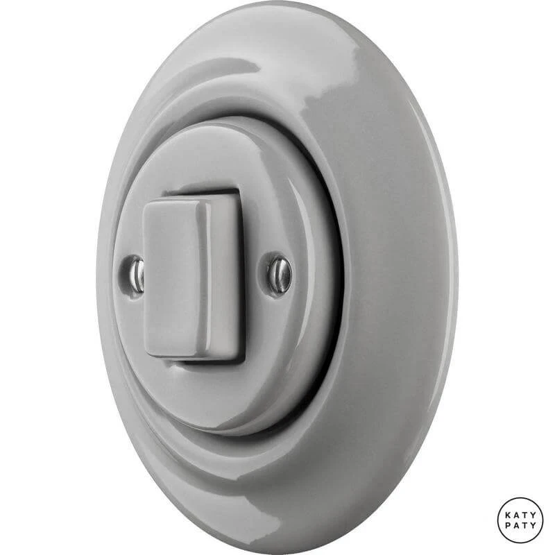Ретро выключатель CAGW7 цвет бетон глянцевый от чешского бренда Katy Paty изготовлен вручную из фарфора. Данная модель выглядит презентабельно и отлично дополнит интерьер как в современном, так и в ретро стиле. Дизайнерский выключатель Katy Paty отличается функциональностью и простотой в использовании. Данная модель разработана с учётом всех современных требований и соответствует европейским стандартам.Винтажный выключатель CAGW7 цвет бетон глянцевый прекрасно сочетается в комплектации с электротоварами для скрытого монтажа. Модель идёт в комплекте с фарфоровой рамкой, шурупы представлены в четырёх цветах на выбор: нержавейка, черный, серебро, латунь.