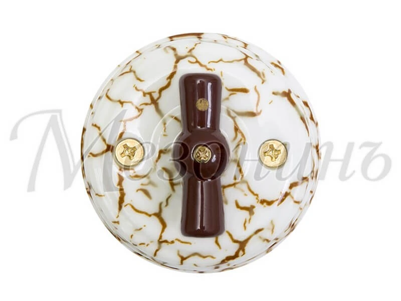 Ретро выключатель без подъемной рамки ТМ МезонинЪ GE70404-20К 2-х позиционный античный мрамор представляет отличное решение для современных интерьеров. Данная модель выключателя популярна в интерьерах в стилях лофт, стимпанк и минимализм. Выключатель ТМ МезонинЪ отвечает всем необходимым стандартам и ГОСТам, имеет высокое качество, подтверждённое сертификатами соответствия.Человек с чувством вкуса при выборе электрики не пройдёт без интереса мимо ретро выключателей ТМ МезонинЪ. Винтажный античный мрамор выключатель отлично сочетается в комплектации с наружной ретро проводкой, ретро изоляторами и распаечной коробкой.Таким образом, приобретая комплект ретро электрики Вы получаете не только электрификацию Вашего дома, но и отличное декоративное решение!