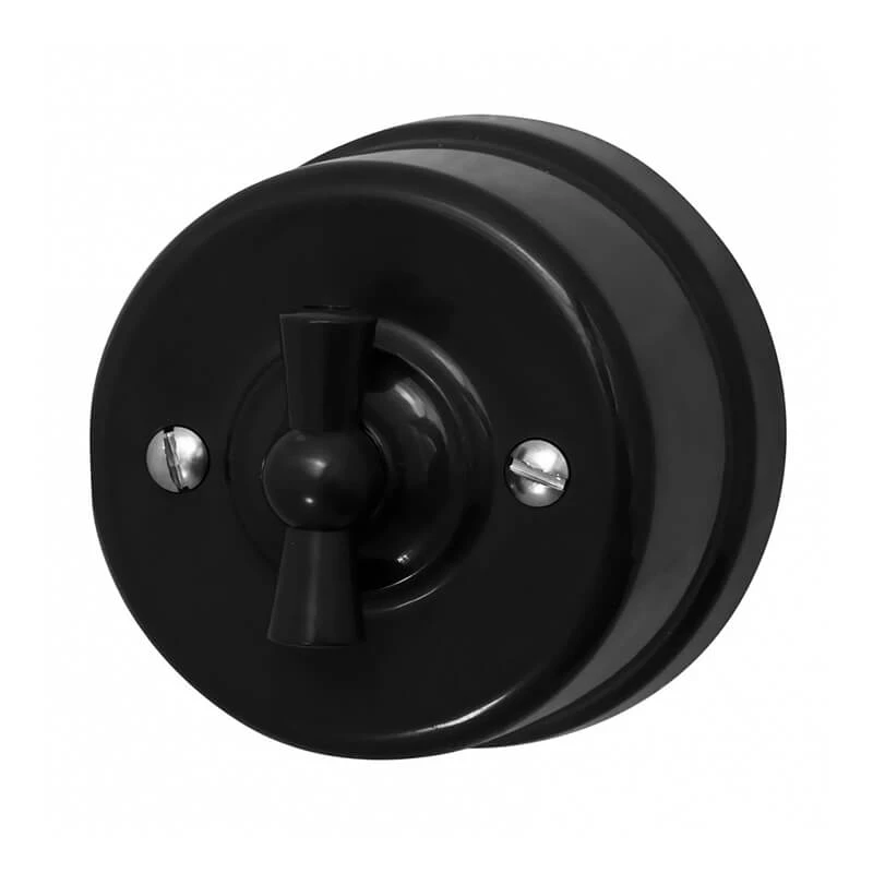 Ретро выключатель прекрасно сочетается в комплектации с интерьерными ретро проводами, наружными латунными трубками или даже с внутренней скрытой проводкой. Выключатель BIRONI цвета черный выполнен из пластика, что придает такому интерьерному аксессуару особую лёгкость и шарм!