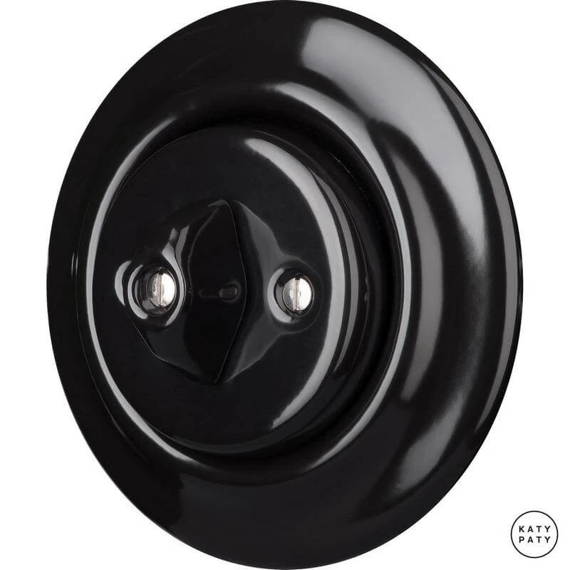 Ретро выключатель NIG1 цвет черный глянцевый от чешского бренда Katy Paty изготовлен вручную из фарфора. Данная модель выглядит презентабельно и отлично дополнит интерьер как в современном, так и в ретро стиле. Дизайнерский выключатель Katy Paty отличается функциональностью и простотой в использовании. Данная модель разработана с учётом всех современных требований и соответствует европейским стандартам.Винтажный выключатель NIG1 цвет черный глянцевый прекрасно сочетается в комплектации с электротоварами для скрытого монтажа. Модель идёт в комплекте с фарфоровой рамкой, шурупы представлены в четырёх цветах на выбор: нержавейка, черный, серебро, латунь.