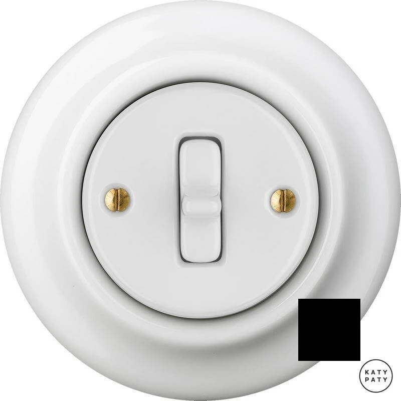 Ретро выключатель NIGT1 цвет черный глянцевый от чешского бренда Katy Paty изготовлен вручную из фарфора. Данная модель выглядит презентабельно и отлично дополнит интерьер как в современном, так и в ретро стиле. Дизайнерский выключатель Katy Paty отличается функциональностью и простотой в использовании. Данная модель разработана с учётом всех современных требований и соответствует европейским стандартам.Винтажный выключатель NIGT1 цвет черный глянцевый прекрасно сочетается в комплектации с электротоварами для скрытого монтажа. Модель идёт в комплекте с фарфоровой рамкой, шурупы представлены в четырёх цветах на выбор: нержавейка, черный, серебро, латунь.