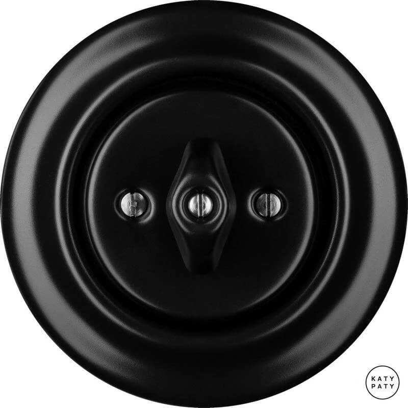 Ретро выключатель NIM6 цвет черный матовый от чешского бренда Katy Paty изготовлен вручную из фарфора. Данная модель выглядит презентабельно и отлично дополнит интерьер как в современном, так и в ретро стиле. Дизайнерский выключатель Katy Paty отличается функциональностью и простотой в использовании. Данная модель разработана с учётом всех современных требований и соответствует европейским стандартам.Винтажный выключатель NIM6 цвет черный матовый прекрасно сочетается в комплектации с электротоварами для скрытого монтажа. Модель идёт в комплекте с фарфоровой рамкой, шурупы представлены в четырёх цветах на выбор: нержавейка, черный, серебро, латунь.