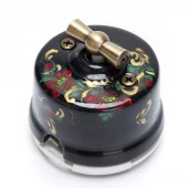 Ретро выключатель четырехпозиционный Salvador черный с росписью под Хохлому прекрасно подходит для современных интерьерных решений. Винтажный выключатель Сальвадор OP21BL.HL отменного качества. Он разработан с учётом всех современных требований, стандартов и ГОСТов.Черный - один из самых популярных цветов. Поэтому не удивительно, что такой ретро выключатель наиболее часто используется дизайнерами, как при классических интерьерных решениях, так и в стиле эко.Данный ретро выключатель прекрасно сочетается в комплектации с интерьерными ретро проводами, наружными латунными трубками или даже с внутренней скрытой проводкой. Черный с росписью под Хохлому выключатель Salvador выполнен из фарфора и патинированной латуни, что придает такому интерьерному аксессуару особый шарм!