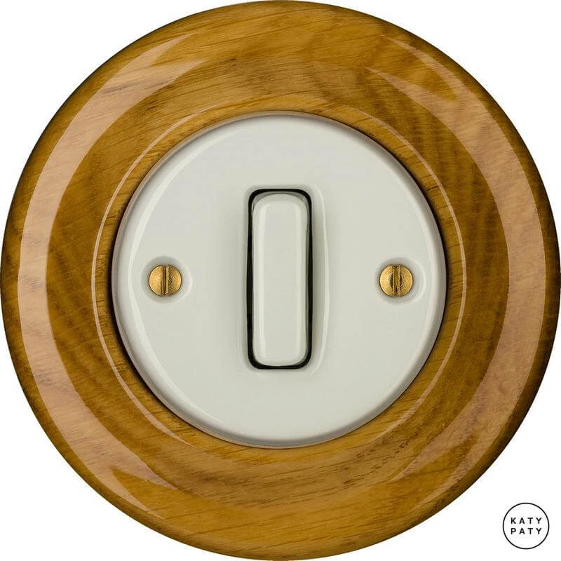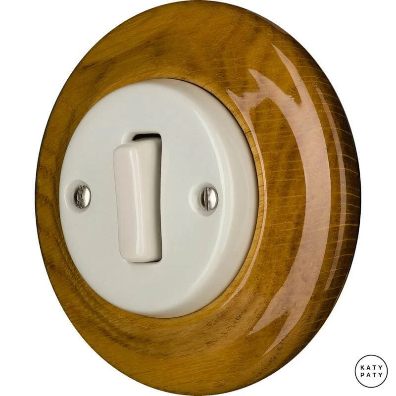 Ретро выключатель LIROGSl7 цвет дуб глянцевый от чешского бренда Katy Paty изготовлен вручную из фарфора. Данная модель выглядит презентабельно и отлично дополнит интерьер как в современном, так и в ретро стиле. Дизайнерский выключатель Katy Paty отличается функциональностью и простотой в использовании. Данная модель разработана с учётом всех современных требований и соответствует европейским стандартам.Винтажный выключатель LIROGSl7 цвет дуб глянцевый прекрасно сочетается в комплектации с электротоварами для скрытого монтажа. Модель идёт в комплекте с фарфоровой рамкой, шурупы представлены в четырёх цветах на выбор: нержавейка, черный, серебро, латунь.