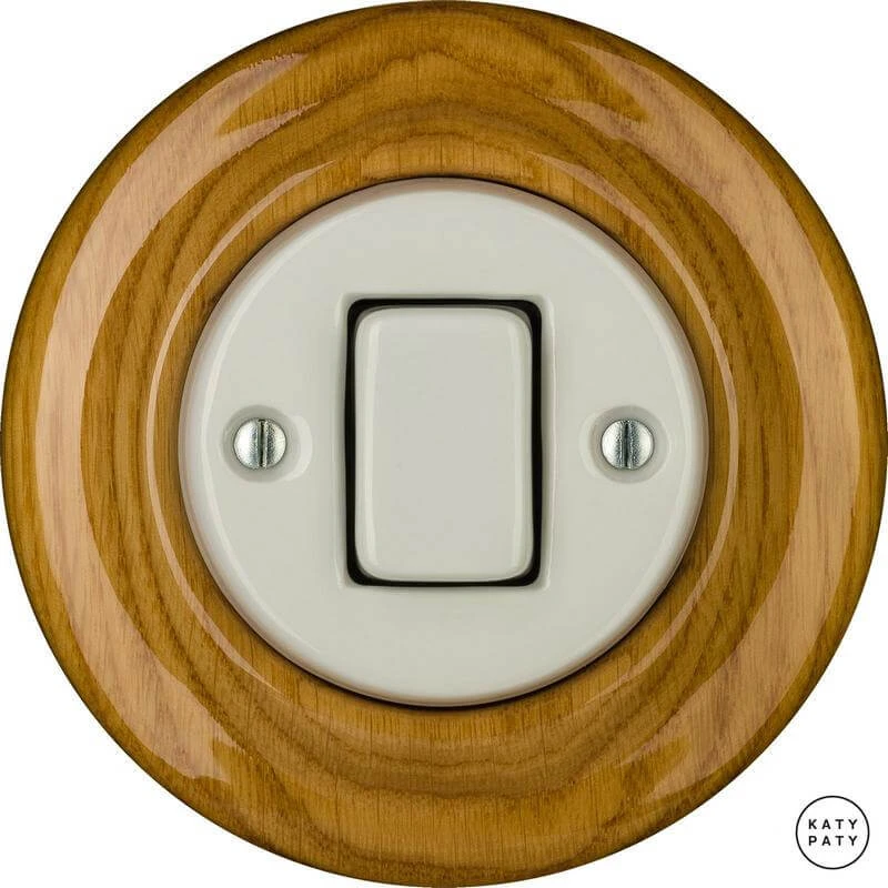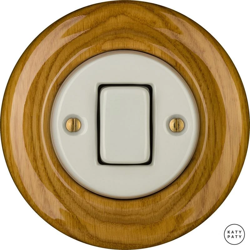 Ретро выключатель LIROGW1 цвет дуб глянцевый от чешского бренда Katy Paty изготовлен вручную из фарфора. Данная модель выглядит презентабельно и отлично дополнит интерьер как в современном, так и в ретро стиле. Дизайнерский выключатель Katy Paty отличается функциональностью и простотой в использовании. Данная модель разработана с учётом всех современных требований и соответствует европейским стандартам.Винтажный выключатель LIROGW1 цвет дуб глянцевый прекрасно сочетается в комплектации с электротоварами для скрытого монтажа. Модель идёт в комплекте с фарфоровой рамкой, шурупы представлены в четырёх цветах на выбор: нержавейка, черный, серебро, латунь.
