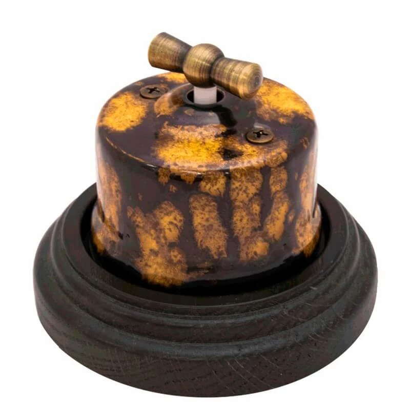 Ретро выключатель четырехпозиционный Salvador OP21EX в цвете экзотик представляет отличное решение для современных интерьеров. Данная модель выключателя особенно популярна в интерьерах в стилях лофт, стимпанк и минимализм. Выключатель Сальвадор отвечает всем необходимым стандартам и ГОСТам, имеет сертификат качества.Человек с чувством вкуса при выборе электрики не пройдёт без интереса мимо ретро выключателей Сальвадор. Винтажный выключатель экзотичной расцветки отлично сочетается в комплектации с наружной ретро проводкой, ретро изоляторами и распаечной коробкой.Таким образом, приобретая комплект ретро электрики Вы получаете не только электрификацию Вашего дома, но и отличное декоративное решение!