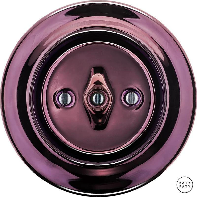 Ретро выключатель PEMAG7 цвет фиолетовый металлик от чешского бренда Katy Paty изготовлен вручную из фарфора. Данная модель выглядит презентабельно и отлично дополнит интерьер как в современном, так и в ретро стиле. Дизайнерский выключатель Katy Paty отличается функциональностью и простотой в использовании. Данная модель разработана с учётом всех современных требований и соответствует европейским стандартам.Винтажный выключатель PEMAG7 цвет фиолетовый металлик прекрасно сочетается в комплектации с электротоварами для скрытого монтажа. Модель идёт в комплекте с фарфоровой рамкой, шурупы представлены в четырёх цветах на выбор: нержавейка, черный, серебро, латунь.