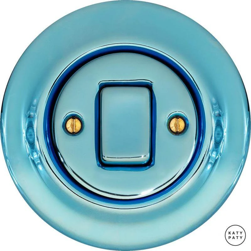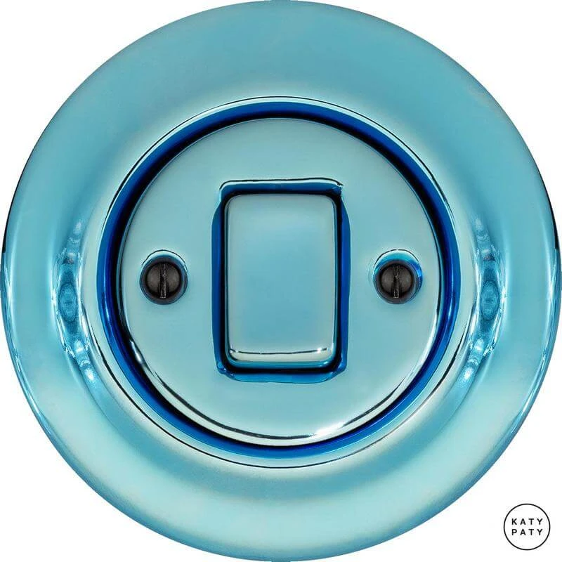 Ретро выключатель PECAGW7 цвет голубой металлик от чешского бренда Katy Paty изготовлен вручную из фарфора. Данная модель выглядит презентабельно и отлично дополнит интерьер как в современном, так и в ретро стиле. Дизайнерский выключатель Katy Paty отличается функциональностью и простотой в использовании. Данная модель разработана с учётом всех современных требований и соответствует европейским стандартам.Винтажный выключатель PECAGW7 цвет голубой металлик прекрасно сочетается в комплектации с электротоварами для скрытого монтажа. Модель идёт в комплекте с фарфоровой рамкой, шурупы представлены в четырёх цветах на выбор: нержавейка, черный, серебро, латунь.