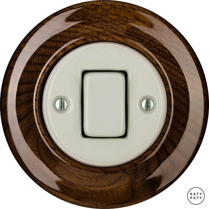 Ретро выключатель LINUGW7 цвет грецкий орех глянцевый от чешского бренда Katy Paty изготовлен вручную из фарфора. Данная модель выглядит презентабельно и отлично дополнит интерьер как в современном, так и в ретро стиле. Дизайнерский выключатель Katy Paty отличается функциональностью и простотой в использовании. Данная модель разработана с учётом всех современных требований и соответствует европейским стандартам.Винтажный выключатель LINUGW7 цвет грецкий орех глянцевый прекрасно сочетается в комплектации с электротоварами для скрытого монтажа. Модель идёт в комплекте с фарфоровой рамкой, шурупы представлены в четырёх цветах на выбор: нержавейка, черный, серебро, латунь.