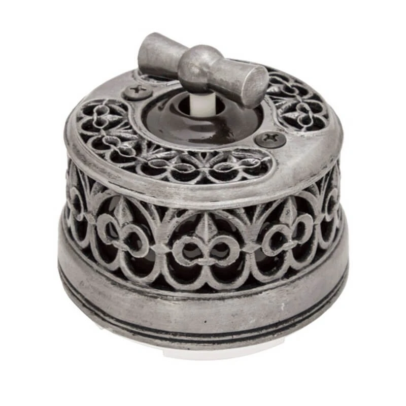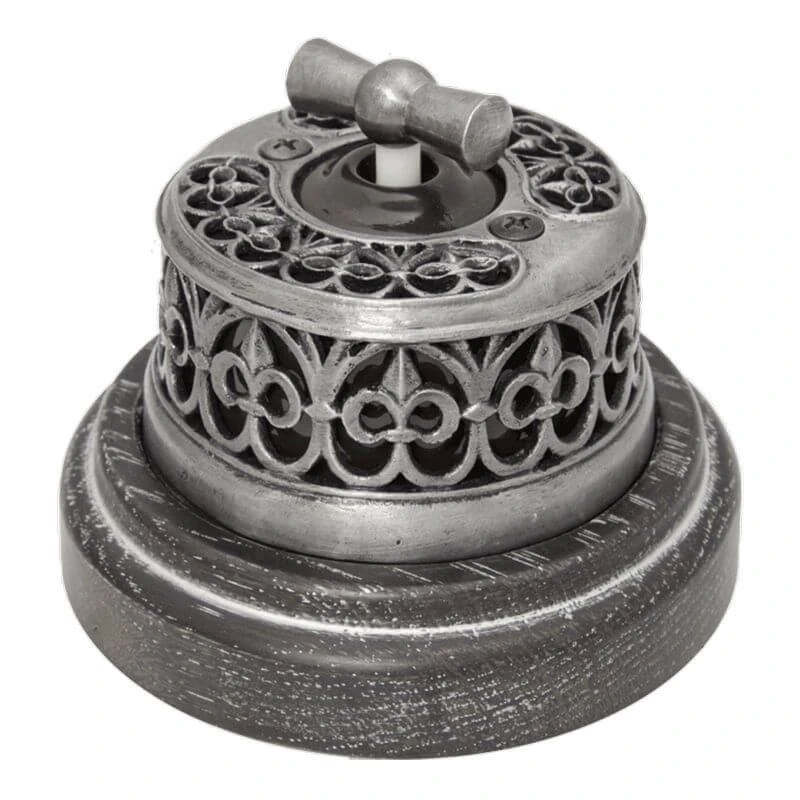 Выключатель Salvador OP11DN.BR двухпозиционный с декорированный под состаренное серебро представляет отличное решение для современных интерьеров. Данная модель выключателя особенно популярна в интерьерах в стилях лофт, стимпанк и минимализм. Выключатель Сальвадор отвечает всем необходимым стандартам и ГОСТам, имеет сертификат качества.Человек с чувством вкуса при выборе электрики не пройдёт без интереса мимо ретро выключателей Сальвадор. Винтажный выключатель состаренное серебро отлично сочетается в комплектации с наружной ретро проводкой, ретро изоляторами и распаечной коробкой.Таким образом, приобретая комплект ретро электрики Вы получаете не только электрификацию Вашего дома, но и отличное декоративное решение!