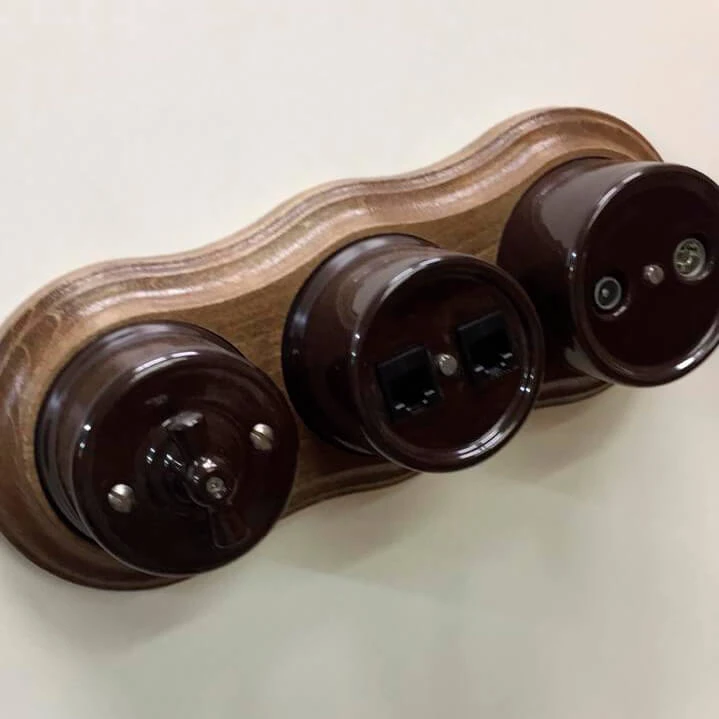 Ретро выключатель BIRONI цвет коричневый прекрасно подходит для современных интерьерных решений. Винтажный выключатель BIRONI В1-202-02 отменного качества. Он разработан с учётом всех современных требований, стандартов и ГОСТов.Так как коричневый - один из самых популярных цветов. Поэтому не удивительно, что такой ретро выключатель наиболее часто используется дизайнерами, как при классических интерьерных решениях, так и в стилях лофт, стимпанк, эко. Данный ретро выключатель прекрасно сочетается в комплектации с интерьерными ретро проводами, наружными латунными трубками или даже с внутренней скрытой проводкой. Выключатель BIRONI цвета коричневый выполнен из электрокерамики, что придает такому интерьерному аксессуару особый шарм!'