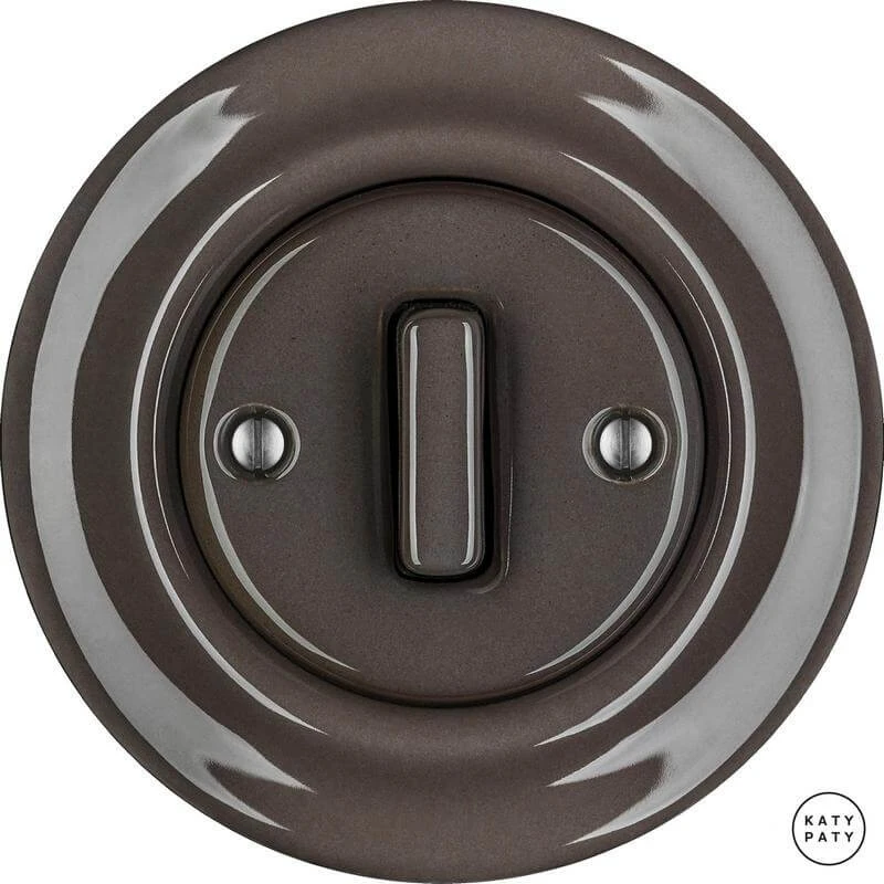Ретро выключатель BRGSl7 цвет коричневый глянцевый от чешского бренда Katy Paty изготовлен вручную из фарфора. Данная модель выглядит презентабельно и отлично дополнит интерьер как в современном, так и в ретро стиле. Дизайнерский выключатель Katy Paty отличается функциональностью и простотой в использовании. Данная модель разработана с учётом всех современных требований и соответствует европейским стандартам.Винтажный выключатель BRGSl7 цвет коричневый глянцевый прекрасно сочетается в комплектации с электротоварами для скрытого монтажа. Модель идёт в комплекте с фарфоровой рамкой, шурупы представлены в четырёх цветах на выбор: нержавейка, черный, серебро, латунь.