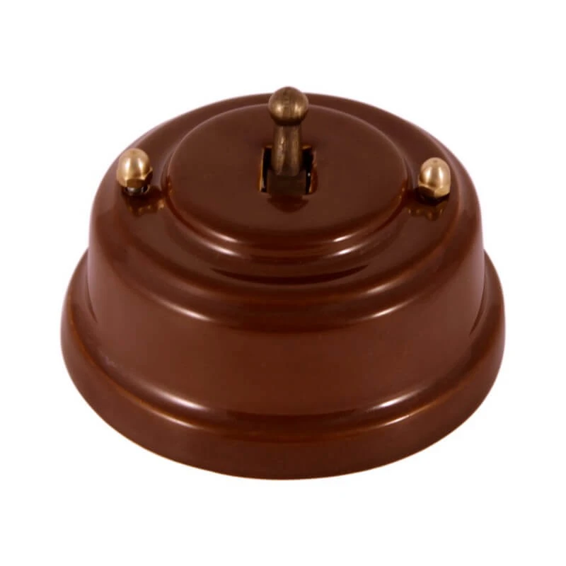 Ретро выключатель ЛЕАНЗА ВРПКБ коричневый представляет отличное решение для современных интерьеров. Данная модель выключателя особенно популярна в интерьерах в стилях лофт, стимпанк и минимализм. Выключатель ЛЕАНЗА отвечает всем необходимым стандартам и ГОСТам, имеет высочайшее качество, подтверждённое сертификатами соответствия.Человек с чувством вкуса при выборе электрики не пройдёт без интереса мимо ретро выключателей LEANZA. Винтажный коричневый выключатель отлично сочетается в комплектации с наружной ретро проводкой, ретро изоляторами и распаечной коробкой.Таким образом, приобретая комплект ретро электрики Вы получаете не только электрификацию Вашего дома, но и отличное декоративное решение!