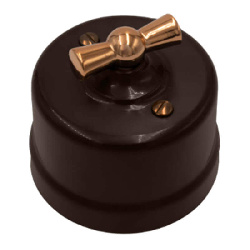 Ретро выключатель пластиковый BIRONI цвет коричневый прекрасно подходит для современных интерьерных решений. Винтажный выключатель BIRONI B1-201-22-C отменного качества. Он разработан с учётом всех современных требований, стандартов и ГОСТов.Так как коричневый - один из самых популярных цветов. Поэтому не удивительно, что такой ретро выключатель наиболее часто используется дизайнерами, как при классических интерьерных решениях, так и в стилях лофт, стимпанк, эко. Данный ретро выключатель прекрасно сочетается в комплектации с интерьерными ретро проводами, наружными латунными трубками или даже с внутренней скрытой проводкой. Выключатель BIRONI цвета коричневый выполнен из высокопрочного пластика, что позволяет смело использовать его при открытой проводке.