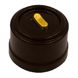 Ретро выключатель пластиковый BIRONI цвет коричневый прекрасно подходит для современных интерьерных решений. Винтажный выключатель BIRONI B1-221-22-G отменного качества. Он разработан с учётом всех современных требований, стандартов и ГОСТов.Так как коричневый - один из самых популярных цветов. Поэтому не удивительно, что такой ретро выключатель наиболее часто используется дизайнерами, как при классических интерьерных решениях, так и в стилях лофт, стимпанк, эко. Данный ретро выключатель прекрасно сочетается в комплектации с интерьерными ретро проводами, наружными латунными трубками или даже с внутренней скрытой проводкой. Выключатель BIRONI цвета коричневый выполнен из высокопрочного пластика, что позволяет смело использовать его при открытой проводке.