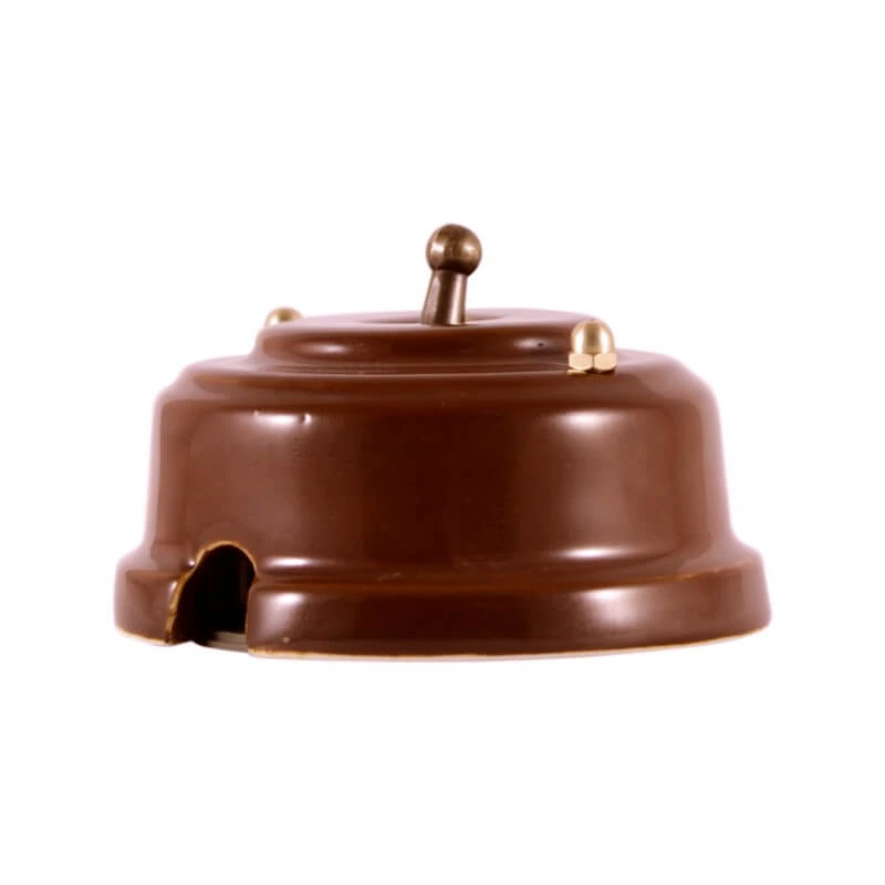 Ретро выключатель ЛЕАНЗА ВР1КБ коричневый представляет отличное решение для современных интерьеров. Данная модель выключателя особенно популярна в интерьерах в стилях лофт, стимпанк и минимализм. Выключатель ЛЕАНЗА отвечает всем необходимым стандартам и ГОСТам, имеет высочайшее качество, подтверждённое сертификатами соответствия.Человек с чувством вкуса при выборе электрики не пройдёт без интереса мимо ретро выключателей LEANZA. Винтажный коричневый выключатель отлично сочетается в комплектации с наружной ретро проводкой, ретро изоляторами и распаечной коробкой.Таким образом, приобретая комплект ретро электрики Вы получаете не только электрификацию Вашего дома, но и отличное декоративное решение!