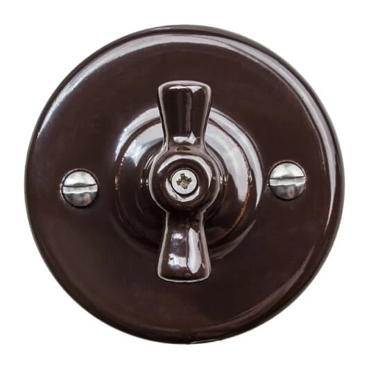 Ретро выключатель BIRONI цвет коричневый прекрасно подходит для современных интерьерных решений. Винтажный выключатель BIRONI В1-203-02 отменного качества. Он разработан с учётом всех современных требований, стандартов и ГОСТов.Так как коричневый - один из самых популярных цветов. Поэтому не удивительно, что такой ретро выключатель наиболее часто используется дизайнерами, как при классических интерьерных решениях, так и в стилях лофт, стимпанк, эко. Данный ретро выключатель прекрасно сочетается в комплектации с интерьерными ретро проводами, наружными латунными трубками или даже с внутренней скрытой проводкой. Выключатель BIRONI цвета коричневый выполнен из электрокерамики, что придает такому интерьерному аксессуару особый шарм!'