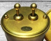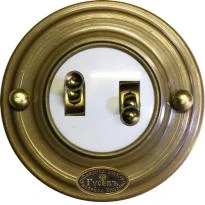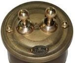 Стильный двухклавишный выключатель, цвет латунь, 12250И-80/2 ГусевЪ для наружного монтажа отлично подходит для деревянных домов, бань, интерьеров в стиле лофт, стимпанк и прованс. Данная модель также гармонично впишется в современные минималистичные дизайны и создаст чарующую винтажную атмосферу.
