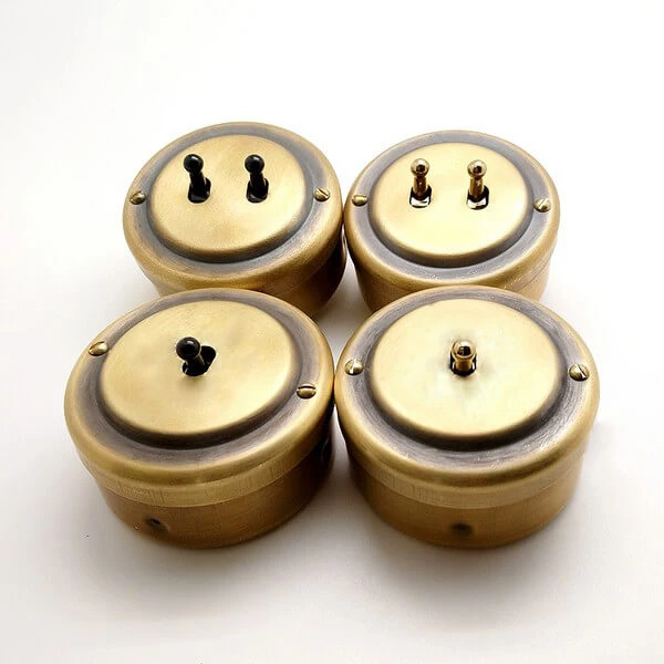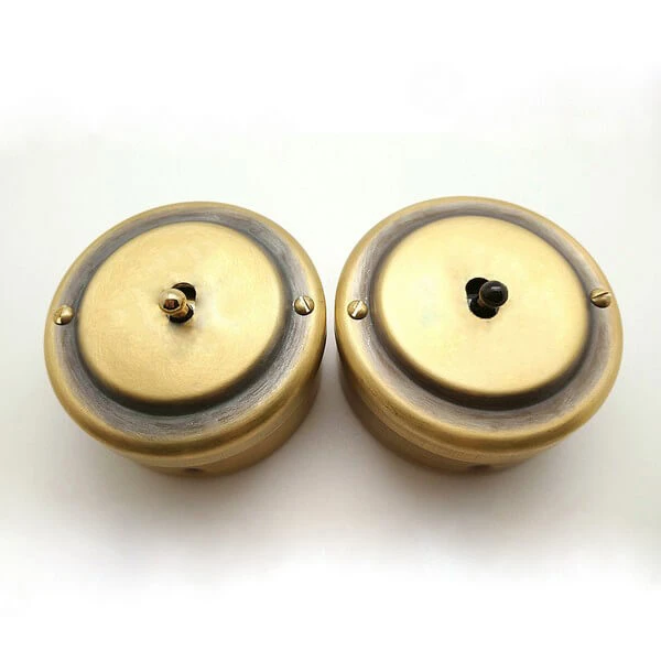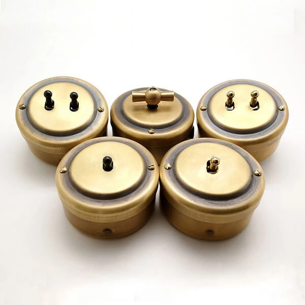 Ретро выключатель 37BR1 Petrucci цвет латунь прекрасно подходит для винтажных интерьеров и лофт пространств. Выключатель тумблерный 37BR1 Petrucci отличного качества, он разработан с учётом всех современных требований, стандартов и ГОСТов. Данный ретро выключатель прекрасно сочетается в комплектации с проводами, изоляторами, розетками и распределительными коробками. Выключатель Petrucci цвет латунь выполнен в ретро стиле, что придает такому интерьерному аксессуару особый шарм!