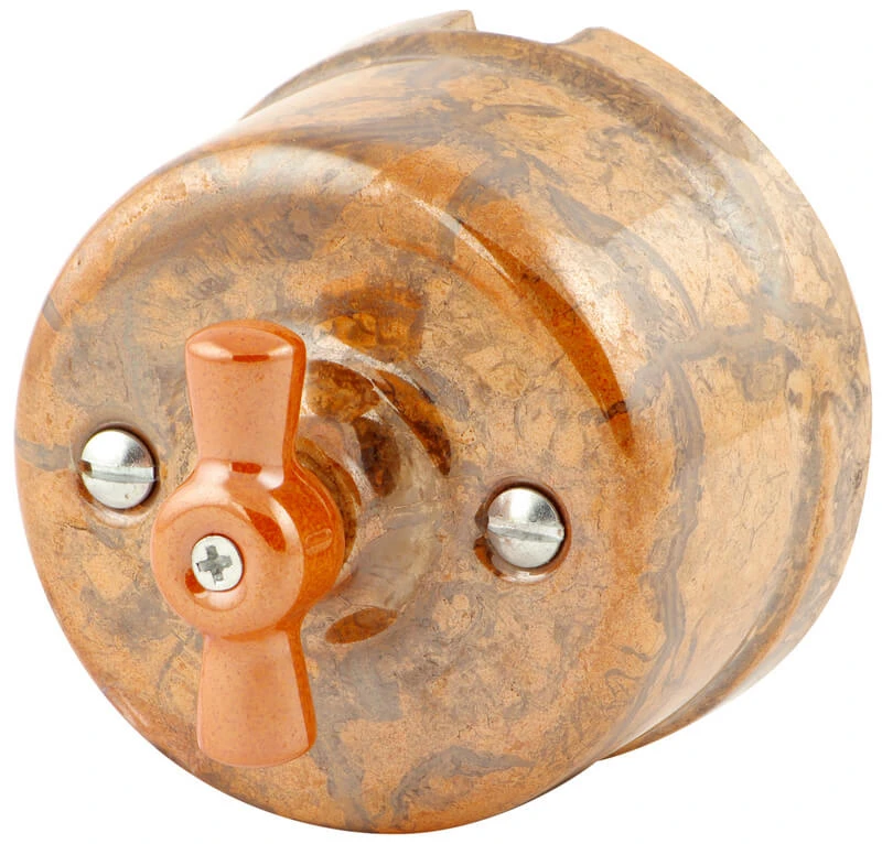 Ретро выключатель одноклавишный Retrika цвет лава прекрасно подходит для современных интерьерных решений. Винтажный выключатель R-SW-19-Л Retrika двухпозиционный отменного качества. Он разработан с учётом всех современных требований, стандартов и ГОСТов. Цвет лава - один из самых популярных оттенков. Поэтому не удивительно, что такой ретро выключатель наиболее часто используется дизайнерами, как при классических интерьерных решениях, так и в стилях лофт, стимпанк, эко.Данный ретро выключатель прекрасно сочетается в комплектации с интерьерными ретро проводами, наружными латунными трубками или даже с внутренней скрытой проводкой. Выключатель R-SW-19-Л Retrika изготовлен из высокопрочной керамики, что придает такому интерьерному аксессуару особый шарм!