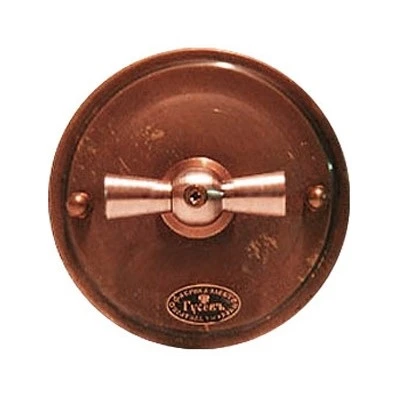 Стильный двухклавишный выключатель, цвет медь, 31033И-80 ГусевЪ для внутреннего монтажа отлично подходит для деревянных домов, бань, интерьеров в стиле лофт, стимпанк и прованс. Данная модель также гармонично впишется в современные минималистичные дизайны и создаст чарующую винтажную атмосферу.
