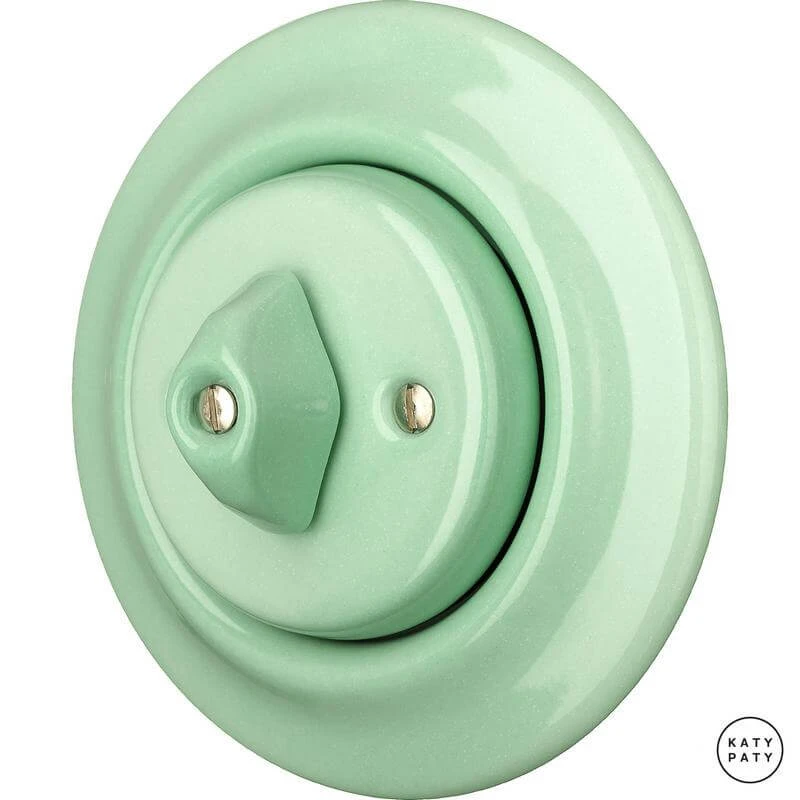 Ретро выключатель PNMEGdm цвет ментол от чешского бренда Katy Paty изготовлен вручную из фарфора. Данная модель выглядит презентабельно и отлично дополнит интерьер как в современном, так и в ретро стиле. Дизайнерский выключатель Katy Paty отличается функциональностью и простотой в использовании. Данная модель разработана с учётом всех современных требований и соответствует европейским стандартам.Винтажный выключатель PNMEGdm цвет ментол прекрасно сочетается в комплектации с электротоварами для скрытого монтажа. Модель идёт в комплекте с фарфоровой рамкой, шурупы представлены в четырёх цветах на выбор: нержавейка, черный, серебро, латунь.