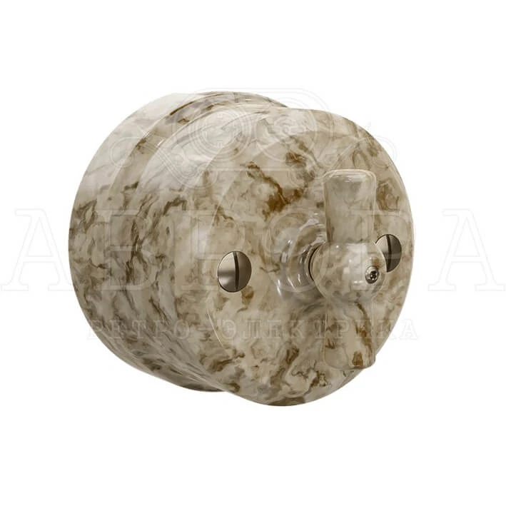 Ретро выключатель ТМ МезонинЪ GE70403-19 мрамор представляет отличное решение для современных интерьеров. Данная модель выключателя популярна в интерьерах в стилях лофт, стимпанк и минимализм. Выключатель ТМ МезонинЪ отвечает всем необходимым стандартам и ГОСТам, имеет высокое качество, подтверждённое сертификатами соответствия.Человек с чувством вкуса при выборе электрики не пройдёт без интереса мимо ретро выключателей ТМ МезонинЪ. Винтажный мрамор выключатель отлично сочетается в комплектации с наружной ретро проводкой, ретро изоляторами и распаечной коробкой.Таким образом, приобретая комплект ретро электрики Вы получаете не только электрификацию Вашего дома, но и отличное декоративное решение!