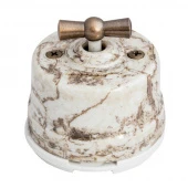 Ретро выключатель Salvador OP11MR 2-х позиционный в цвете мрамор представляет отличное решение для современных интерьеров. Данная модель выключателя особенно популярна в интерьерах в стилях лофт, стимпанк и минимализм. Выключатель Сальвадор отвечает всем необходимым стандартам и ГОСТам, имеет сертификат качества.Человек с чувством вкуса при выборе электрики не пройдёт без интереса мимо ретро выключателей Сальвадор. Винтажный выключатель мраморной расцветки отлично сочетается в комплектации с наружной ретро проводкой, ретро изоляторами и распаечной коробкой.Таким образом, приобретая комплект ретро электрики Вы получаете не только электрификацию Вашего дома, но и отличное декоративное решение!