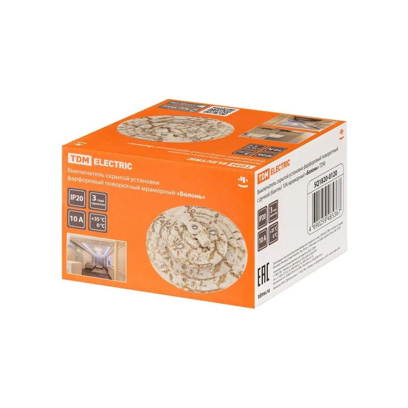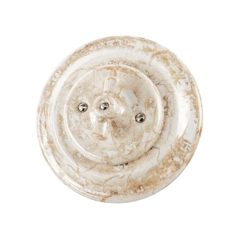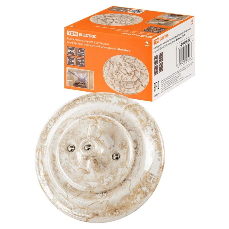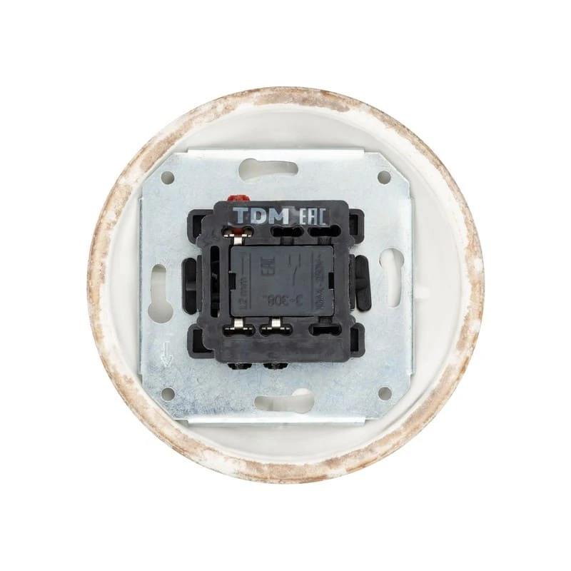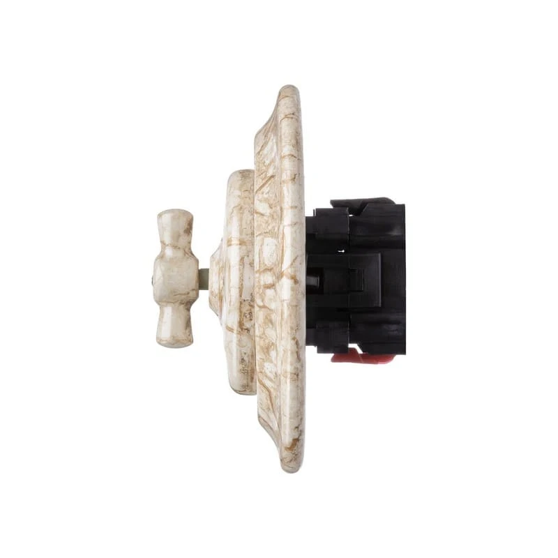 Ретро выключатель пластиковый TDM ELECTRIC цвет мраморный прекрасно подходит для современных интерьерных решений. Винтажный выключатель TDM ELECTRIC SQ1820-0112 отменного качества. Он разработан с учётом всех современных требований, стандартов и ГОСТов.Так как мраморный - один из самых популярных цветов. Поэтому не удивительно, что такой ретро выключатель наиболее часто используется дизайнерами, как при классических интерьерных решениях, так и в стилях лофт, стимпанк, эко. Данный ретро выключатель прекрасно сочетается в комплектации с интерьерными ретро проводами, наружными латунными трубками или даже с внутренней скрытой проводкой. Выключатель TDM ELECTRIC цвета мраморный выполнен из высокопрочного пластика, что позволяет смело использовать его при открытой проводке.
