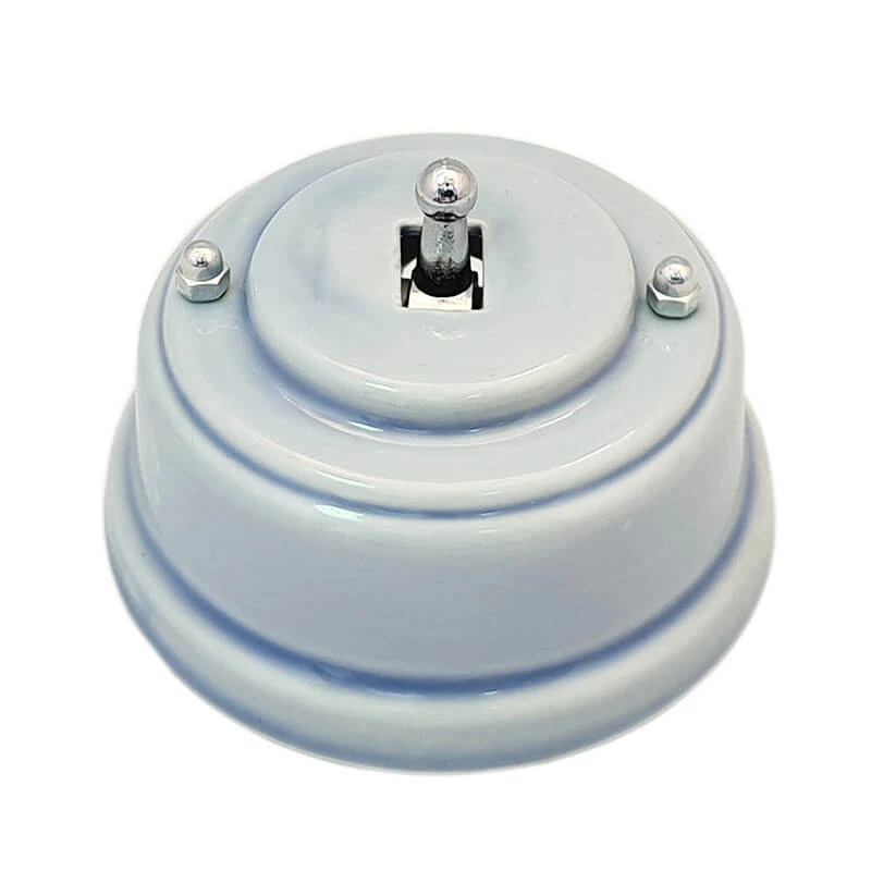 Ретро выключатель ЛЕАНЗА ВРПНС небесно-голубой представляет отличное решение для современных интерьеров. Данная модель выключателя особенно популярна в интерьерах в стилях лофт, стимпанк и минимализм. Выключатель ЛЕАНЗА отвечает всем необходимым стандартам и ГОСТам, имеет высочайшее качество, подтверждённое сертификатами соответствия.Человек с чувством вкуса при выборе электрики не пройдёт без интереса мимо ретро выключателей LEANZA. Винтажный небесно-голубой выключатель отлично сочетается в комплектации с наружной ретро проводкой, ретро изоляторами и распаечной коробкой.Таким образом, приобретая комплект ретро электрики Вы получаете не только электрификацию Вашего дома, но и отличное декоративное решение!