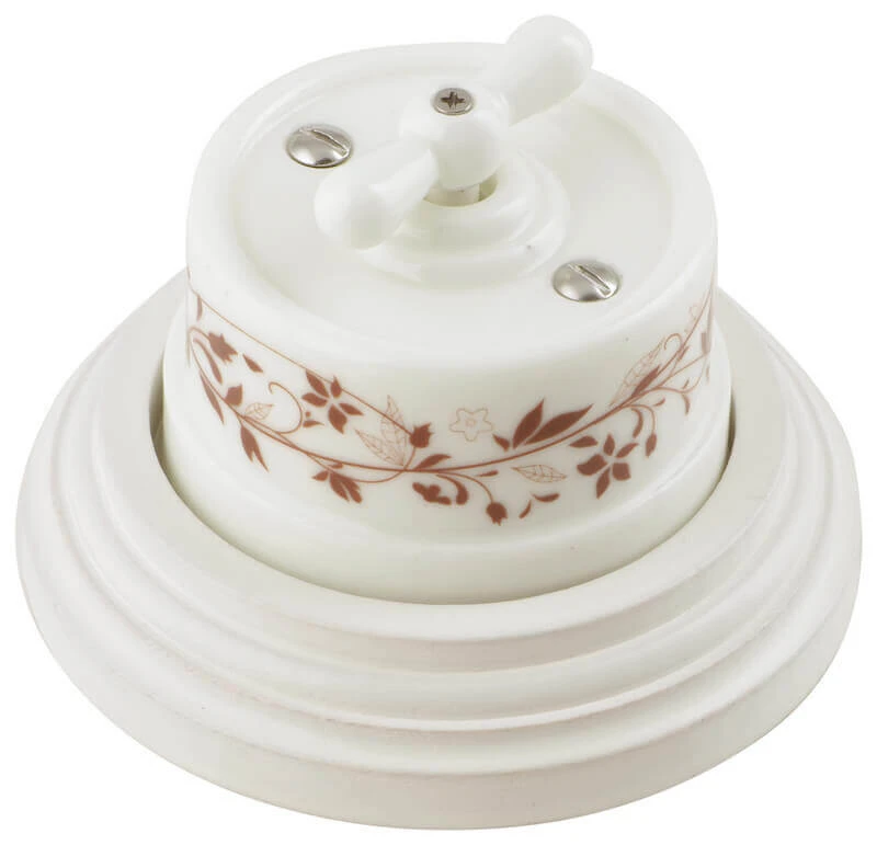 Ретро выключатель Werkel a036793-ОЛ орнамент лиана представляет отличное решение для современных интерьеров. Данная модель выключателя особенно популярна в интерьерах в стилях лофт, стимпанк и минимализм. Выключатель Werkel отвечает всем необходимым стандартам и ГОСТам, имеет высочайшее качество, подтверждённое сертификатами соответствия.Человек с чувством вкуса при выборе электрики не пройдёт без интереса мимо ретро выключателей Werkel. Винтажный орнамент лиана выключатель отлично сочетается в комплектации с наружной ретро проводкой, ретро изоляторами и распаечной коробкой.Таким образом, приобретая комплект ретро электрики Вы получаете не только электрификацию Вашего дома, но и отличное декоративное решение!