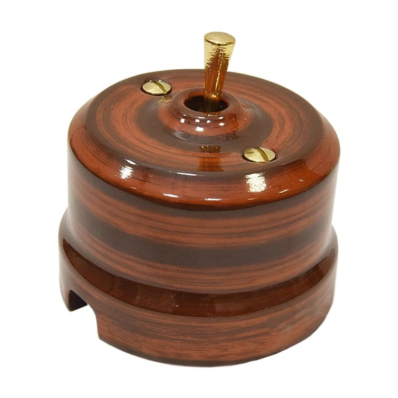 Керамический ретро выключатель Lindas цвет палисандр прекрасно подходит для современных интерьерных решений. Винтажный тумблерный выключатель Lindas 34527-G отменного качества. Он разработан с учётом всех современных требований, стандартов и ГОСТов.Так как палисандр - один из самых популярных цветов. Поэтому не удивительно, что такой ретро выключатель наиболее часто используется дизайнерами, как при классических интерьерных решениях, так и в стилях лофт, стимпанк, эко. Данный ретро выключатель прекрасно сочетается в комплектации с интерьерными ретро проводами, наружными латунными трубками или даже с внутренней скрытой проводкой. Выключатель Lindas цвет палисандр выполнен из керамики, что придает такому интерьерному аксессуару особый шарм!