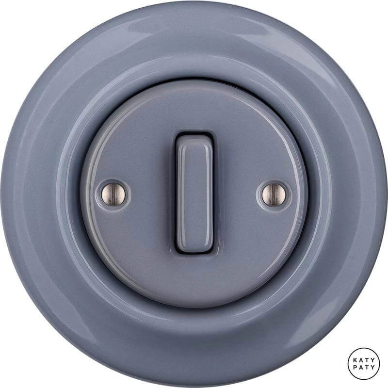 Ретро выключатель LIGSlds цвет пепельно-серый глянцевый от чешского бренда Katy Paty изготовлен вручную из фарфора. Данная модель выглядит презентабельно и отлично дополнит интерьер как в современном, так и в ретро стиле. Дизайнерский выключатель Katy Paty отличается функциональностью и простотой в использовании. Данная модель разработана с учётом всех современных требований и соответствует европейским стандартам.Винтажный выключатель LIGSlds цвет пепельно-серый глянцевый прекрасно сочетается в комплектации с электротоварами для скрытого монтажа. Модель идёт в комплекте с фарфоровой рамкой, шурупы представлены в четырёх цветах на выбор: нержавейка, черный, серебро, латунь.