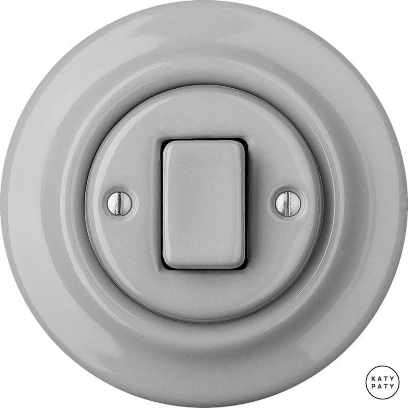 Ретро выключатель CAGW6 цвет бетон глянцевый от чешского бренда Katy Paty изготовлен вручную из фарфора. Данная модель выглядит презентабельно и отлично дополнит интерьер как в современном, так и в ретро стиле. Дизайнерский выключатель Katy Paty отличается функциональностью и простотой в использовании. Данная модель разработана с учётом всех современных требований и соответствует европейским стандартам.Винтажный выключатель CAGW6 цвет бетон глянцевый прекрасно сочетается в комплектации с электротоварами для скрытого монтажа. Модель идёт в комплекте с фарфоровой рамкой, шурупы представлены в четырёх цветах на выбор: нержавейка, черный, серебро, латунь.