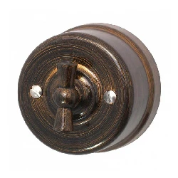 Ретро выключатель пластиковый BIRONI цвет бронза прекрасно подходит для современных интерьерных решений. Винтажный выключатель BIRONI B1-201-25 отменного качества. Он разработан с учётом всех современных требований, стандартов и ГОСТов.Так как бронза - один из самых популярных цветов. Поэтому не удивительно, что такой ретро выключатель наиболее часто используется дизайнерами, как при классических интерьерных решениях, так и в стилях лофт, стимпанк, эко. Данный ретро выключатель прекрасно сочетается в комплектации с интерьерными ретро проводами, наружными латунными трубками или даже с внутренней скрытой проводкой. Выключатель BIRONI цвета бронза выполнен из высокопрочного пластика, что позволяет смело использовать его при открытой проводке.