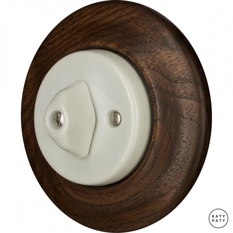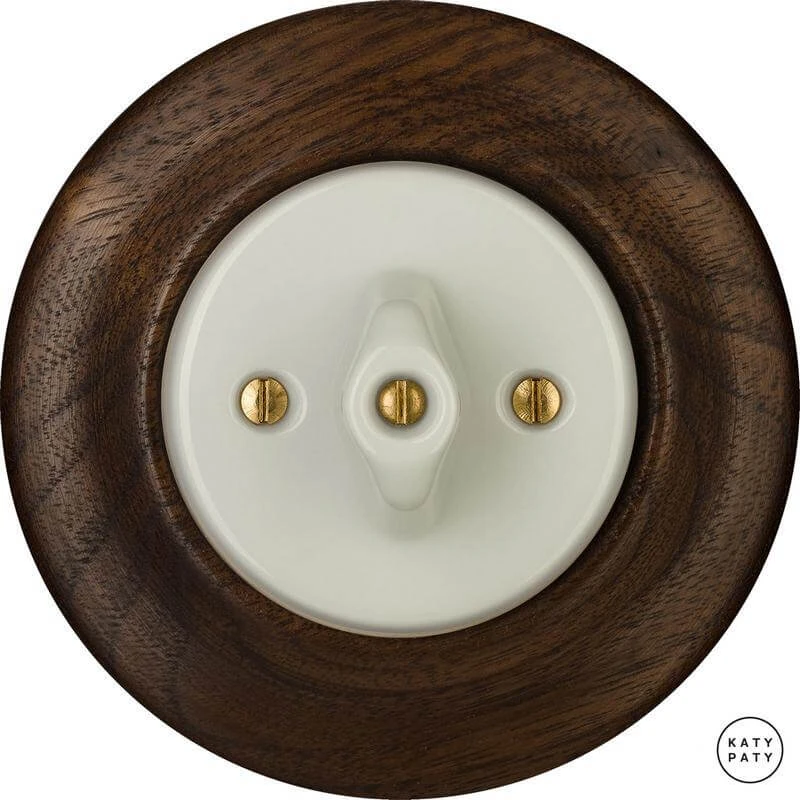 Ретро выключатель LINUM6 цвет грецкий орех матовый от чешского бренда Katy Paty изготовлен вручную из фарфора. Данная модель выглядит презентабельно и отлично дополнит интерьер как в современном, так и в ретро стиле. Дизайнерский выключатель Katy Paty отличается функциональностью и простотой в использовании. Данная модель разработана с учётом всех современных требований и соответствует европейским стандартам.Винтажный выключатель LINUM6 цвет грецкий орех матовый прекрасно сочетается в комплектации с электротоварами для скрытого монтажа. Модель идёт в комплекте с фарфоровой рамкой, шурупы представлены в четырёх цветах на выбор: нержавейка, черный, серебро, латунь.