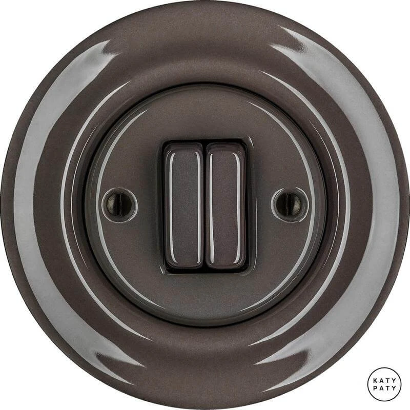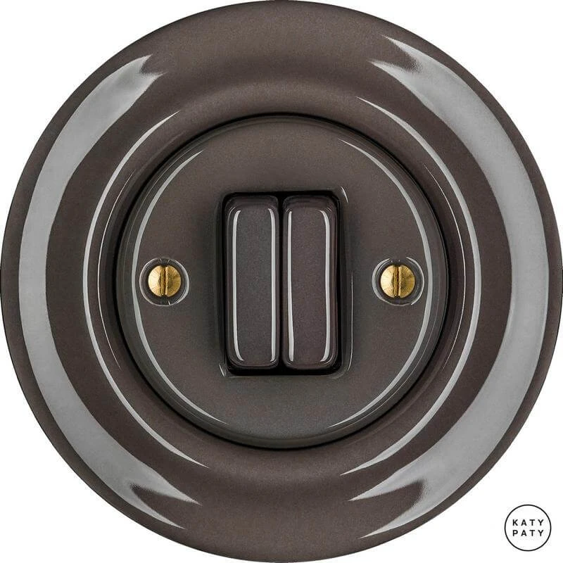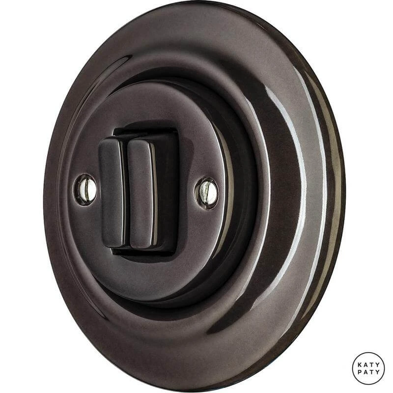 Ретро выключатель BRG2Sl6/6 цвет коричневый глянцевый от чешского бренда Katy Paty изготовлен вручную из фарфора. Данная модель выглядит презентабельно и отлично дополнит интерьер как в современном, так и в ретро стиле. Дизайнерский выключатель Katy Paty отличается функциональностью и простотой в использовании. Данная модель разработана с учётом всех современных требований и соответствует европейским стандартам.Винтажный выключатель BRG2Sl6/6 цвет коричневый глянцевый прекрасно сочетается в комплектации с электротоварами для скрытого монтажа. Модель идёт в комплекте с фарфоровой рамкой, шурупы представлены в четырёх цветах на выбор: нержавейка, черный, серебро, латунь.