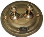 Стильный перекрестный выключатель, цвет латунь, 5202ТИ-80/2 ГусевЪ для внутреннего монтажа отлично подходит для деревянных домов, бань, интерьеров в стиле лофт, стимпанк и прованс. Данная модель также гармонично впишется в современные минималистичные дизайны и создаст чарующую винтажную атмосферу.