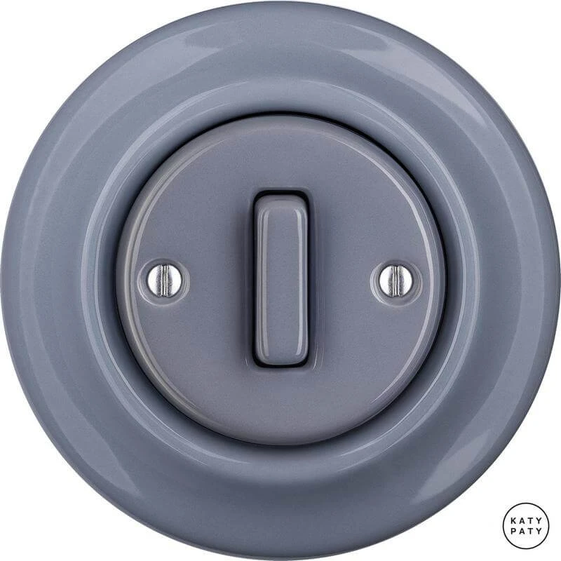 Ретро выключатель LIGSl6 цвет пепельно-серый глянцевый от чешского бренда Katy Paty изготовлен вручную из фарфора. Данная модель выглядит презентабельно и отлично дополнит интерьер как в современном, так и в ретро стиле. Дизайнерский выключатель Katy Paty отличается функциональностью и простотой в использовании. Данная модель разработана с учётом всех современных требований и соответствует европейским стандартам.Винтажный выключатель LIGSl6 цвет пепельно-серый глянцевый прекрасно сочетается в комплектации с электротоварами для скрытого монтажа. Модель идёт в комплекте с фарфоровой рамкой, шурупы представлены в четырёх цветах на выбор: нержавейка, черный, серебро, латунь.