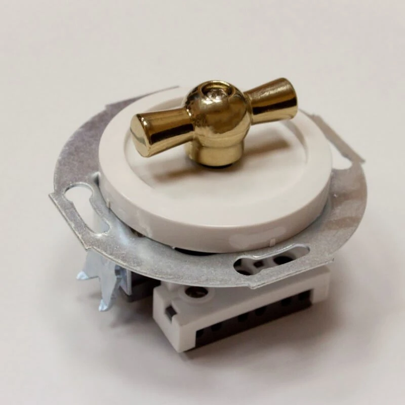 Дизайнерский 2-х позиционный выключатель белый/золото, 880704-1 Vintage для внутреннего монтажа - это отличное решение для современных интерьеров. Данная модель выключателя особенно популярна в интерьерах в стилях лофт, модерн, стимпанк, винтаж и минимализм, и, конечно же, в домах с деревянной отделкой.