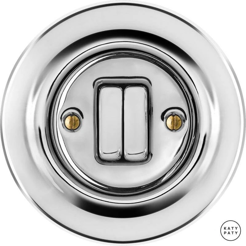 Ретро выключатель OPARG2Sl6/6 цвет серебряный глянцевый от чешского бренда Katy Paty изготовлен вручную из фарфора. Данная модель выглядит презентабельно и отлично дополнит интерьер как в современном, так и в ретро стиле. Дизайнерский выключатель Katy Paty отличается функциональностью и простотой в использовании. Данная модель разработана с учётом всех современных требований и соответствует европейским стандартам.Винтажный выключатель OPARG2Sl6/6 цвет серебряный глянцевый прекрасно сочетается в комплектации с электротоварами для скрытого монтажа. Модель идёт в комплекте с фарфоровой рамкой, шурупы представлены в четырёх цветах на выбор: нержавейка, черный, серебро, латунь.