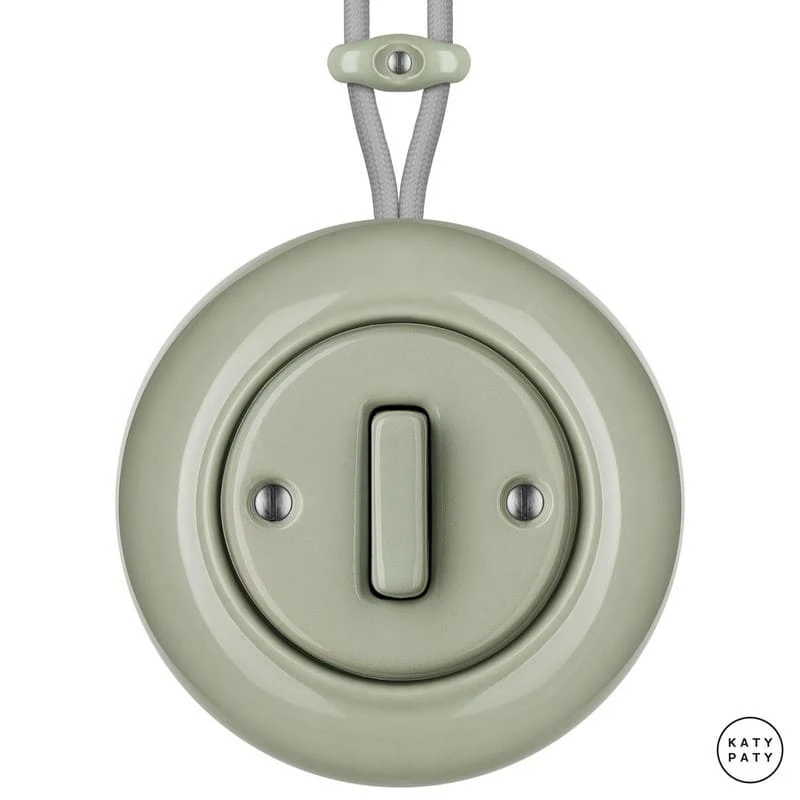 Ретро выключатель CHСSl6 цвет серо-зеленый глянцевый от чешского бренда Katy Paty изготовлен вручную из фарфора. Данная модель выглядит презентабельно и отлично дополнит интерьер как в современном, так и в ретро стиле. Дизайнерский выключатель Katy Paty отличается функциональностью и простотой в использовании. Данная модель разработана с учётом всех современных требований и соответствует европейским стандартам.Винтажный выключатель CHСSl6 цвет серо-зеленый глянцевый прекрасно сочетается в комплектации с электротоварами для открытого монтажа. Модель может быть укомплектована шурупами в четырёх цветах на выбор: нержавейка, черный, серебро, латунь.