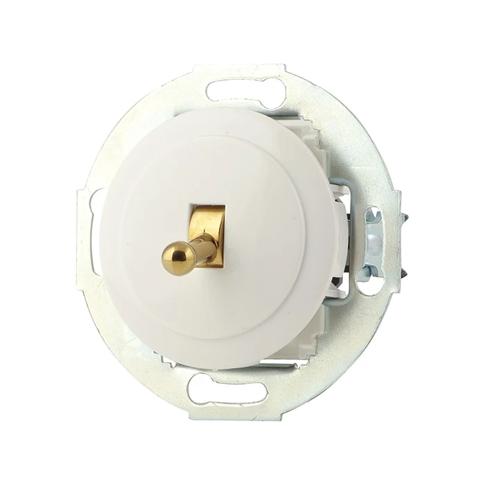Дизайнерский 2-х позиционный выключатель белый/золото, 880804-1 Vintage для внутреннего монтажа - это отличное решение для современных интерьеров. Данная модель выключателя особенно популярна в интерьерах в стилях лофт, модерн, стимпанк, винтаж и минимализм, и, конечно же, в домах с деревянной отделкой.