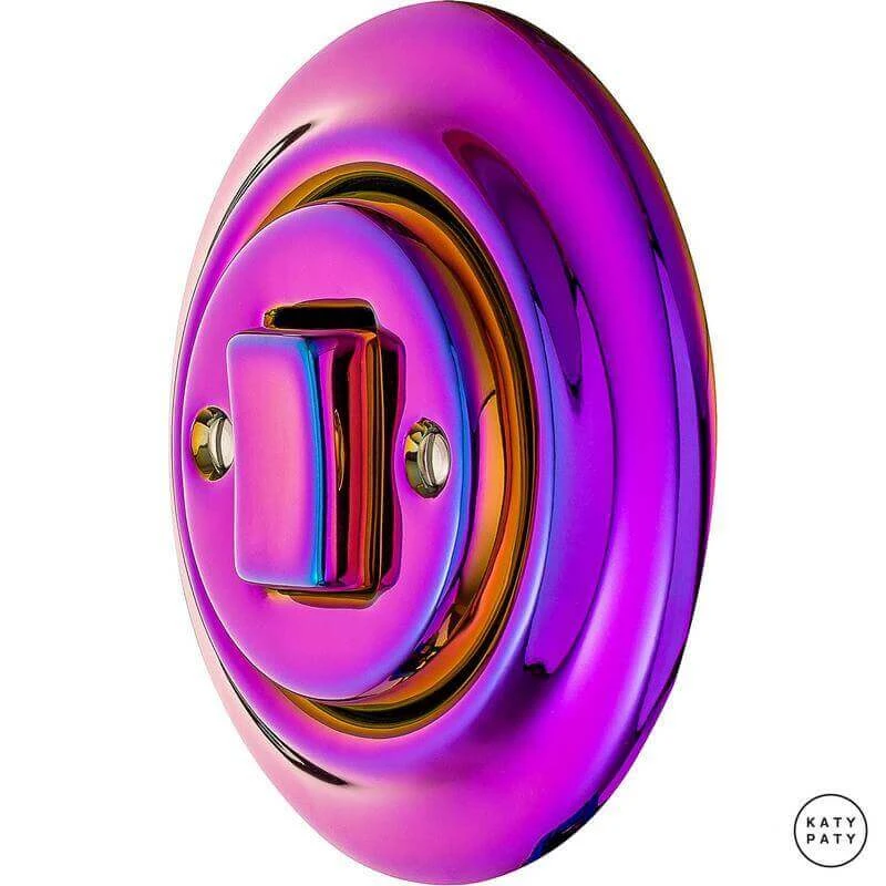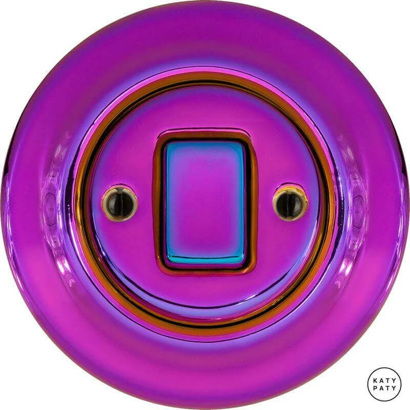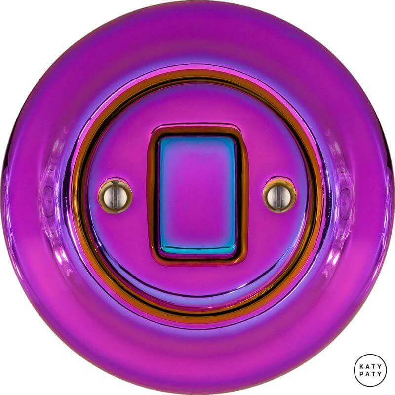 Ретро выключатель PEVIGWds цвет пурпурно-фиолетовый металлик от чешского бренда Katy Paty изготовлен вручную из фарфора. Данная модель выглядит презентабельно и отлично дополнит интерьер как в современном, так и в ретро стиле. Дизайнерский выключатель Katy Paty отличается функциональностью и простотой в использовании. Данная модель разработана с учётом всех современных требований и соответствует европейским стандартам.Винтажный выключатель PEVIGWds цвет пурпурно-фиолетовый металлик прекрасно сочетается в комплектации с электротоварами для скрытого монтажа. Модель идёт в комплекте с фарфоровой рамкой, шурупы представлены в четырёх цветах на выбор: нержавейка, черный, серебро, латунь.