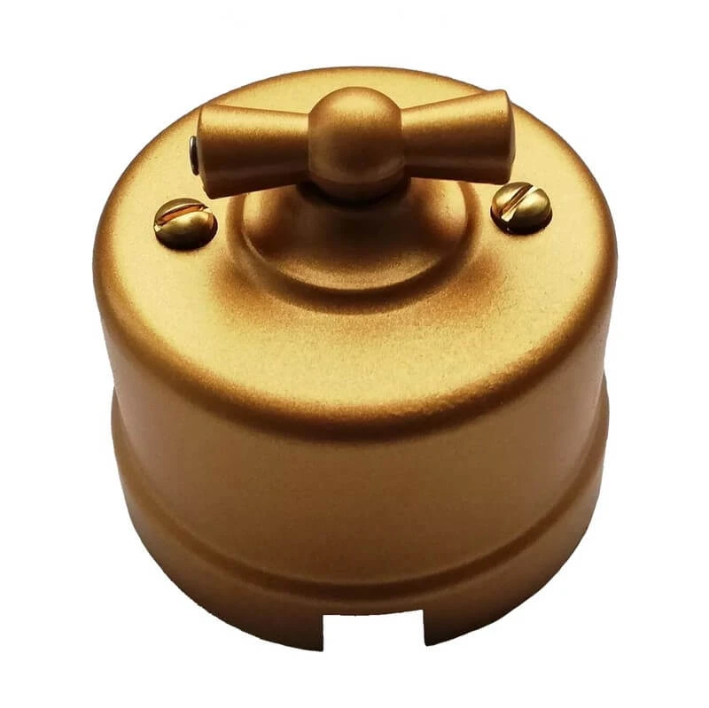 Ретро выключатель RE-RDV1Gl-PV Р-Электро цвет золото представляет отличное решение для современных интерьеров. Данная модель выключателя популярна в интерьерах в стилях лофт, стимпанк и минимализм. Выключатель Р-Электро отвечает всем необходимым стандартам и ГОСТам, имеет высокое качество, подтверждённое сертификатами соответствия.Винтажный выключатель Р-Электро цвет золото отлично сочетается в комплектации с наружной ретро проводкой, ретро изоляторами и распаечной коробкой.