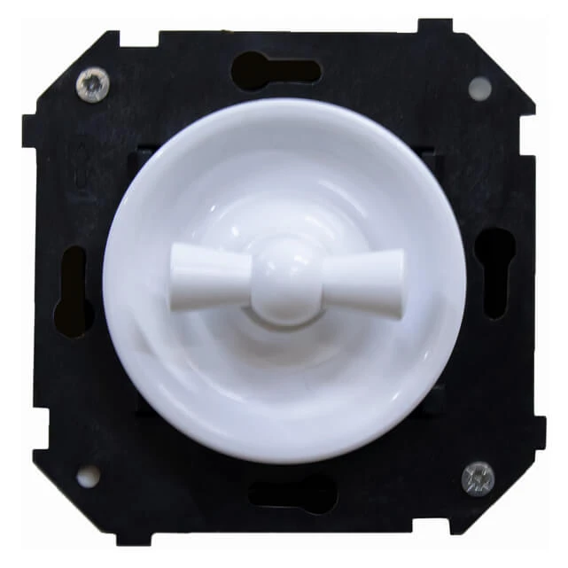 Ретро выключатель пластиковый BIRONI цвет белый прекрасно подходит для современных интерьерных решений. Винтажный выключатель BIRONI B3-202-21 отменного качества. Он разработан с учётом всех современных требований, стандартов и ГОСТов.Так как белый - один из самых популярных цветов. Поэтому не удивительно, что такой ретро выключатель наиболее часто используется дизайнерами, как при классических интерьерных решениях, так и в стилях лофт, стимпанк, эко. Данный ретро выключатель прекрасно сочетается в комплектации с интерьерными ретро проводами, наружными латунными трубками или даже с внутренней скрытой проводкой. Выключатель BIRONI цвета белый выполнен из высокопрочного пластика, что позволяет смело использовать его при открытой проводке.