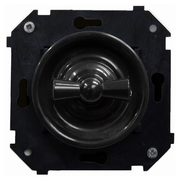 Ретро выключатель пластиковый BIRONI цвет черный прекрасно подходит для современных интерьерных решений. Винтажный выключатель BIRONI B3-201-23 отменного качества. Он разработан с учётом всех современных требований, стандартов и ГОСТов.Так как черный - один из самых популярных цветов. Поэтому не удивительно, что такой ретро выключатель наиболее часто используется дизайнерами, как при классических интерьерных решениях, так и в стилях лофт, стимпанк, эко. Данный ретро выключатель прекрасно сочетается в комплектации с интерьерными ретро проводами, наружными латунными трубками или даже с внутренней скрытой проводкой. Выключатель BIRONI цвета черный выполнен из высокопрочного пластика, что позволяет смело использовать его при открытой проводке.