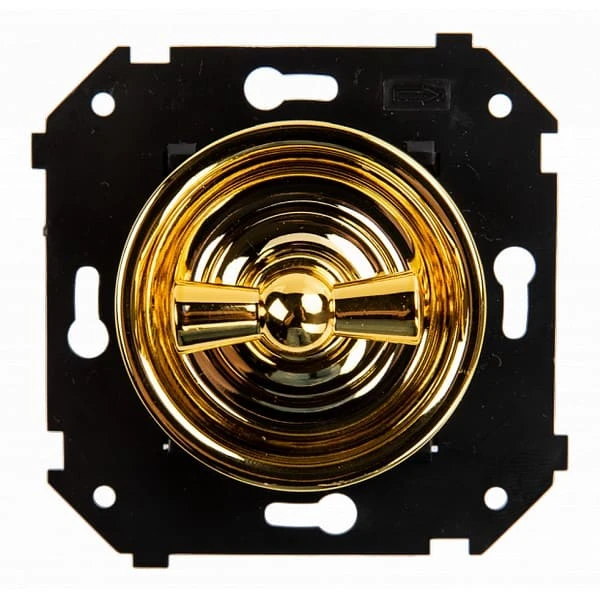 Ретро выключатель пластиковый BIRONI цвет золото прекрасно подходит для современных интерьерных решений. Винтажный выключатель BIRONI B3-201-G-G отменного качества. Он разработан с учётом всех современных требований, стандартов и ГОСТов.Так как золото - один из самых популярных цветов. Поэтому не удивительно, что такой ретро выключатель наиболее часто используется дизайнерами, как при классических интерьерных решениях, так и в стилях лофт, стимпанк, эко. Данный ретро выключатель прекрасно сочетается в комплектации с интерьерными ретро проводами, наружными латунными трубками или даже с внутренней скрытой проводкой. Выключатель BIRONI цвета золото выполнен из высокопрочного пластика, что позволяет смело использовать его при открытой проводке.