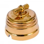 Ретро выключатель ТМ МезонинЪ GE70404-30 2-х позиционный золото представляет отличное решение для современных интерьеров. Данная модель выключателя особенно популярна в интерьерах в стилях лофт, стимпанк и минимализм. Выключатель ТМ МезонинЪ отвечает всем необходимым стандартам и ГОСТам, имеет высочайшее качество, подтверждённое сертификатами соответствия.Человек с чувством вкуса при выборе электрики не пройдёт без интереса мимо ретро выключателей ТМ МезонинЪ. Винтажный выключатель c окантовкой отлично сочетается в комплектации с наружной ретро проводкой, ретро изоляторами и распаечной коробкой.Таким образом, приобретая комплект ретро электрики Вы получаете не только электрификацию Вашего дома, но и отличное декоративное решение!